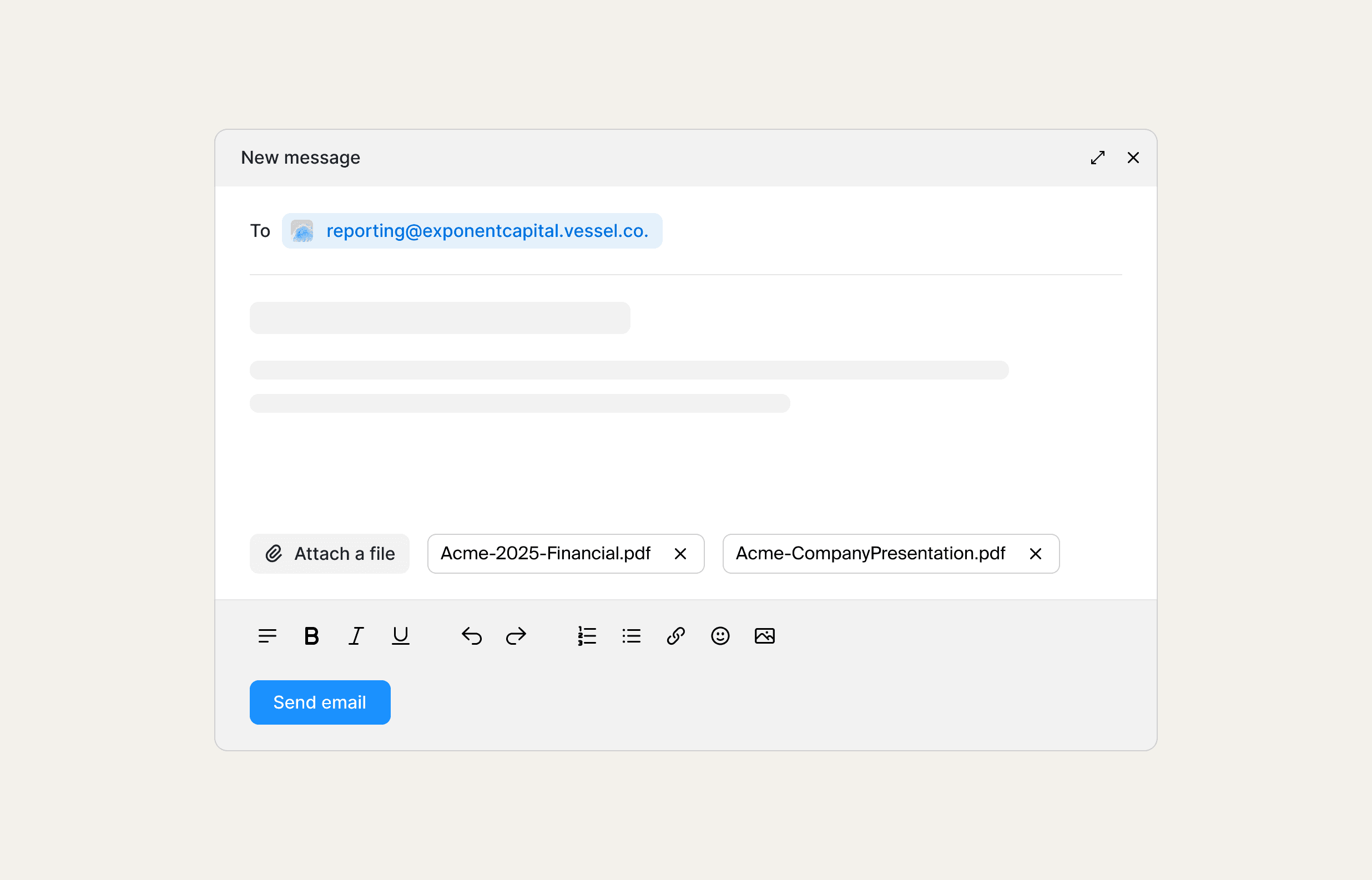With Autonomous Reporting, Vessel starts doing the work for you. Portfolio company updates can now be sent directly to Vessel by email or uploaded as PDFs, decks, or spreadsheets. From there, the IR Assistant automatically categorizes incoming documents, extracts key financials and qualitative updates, and organizes everything into a structured, review-ready view.