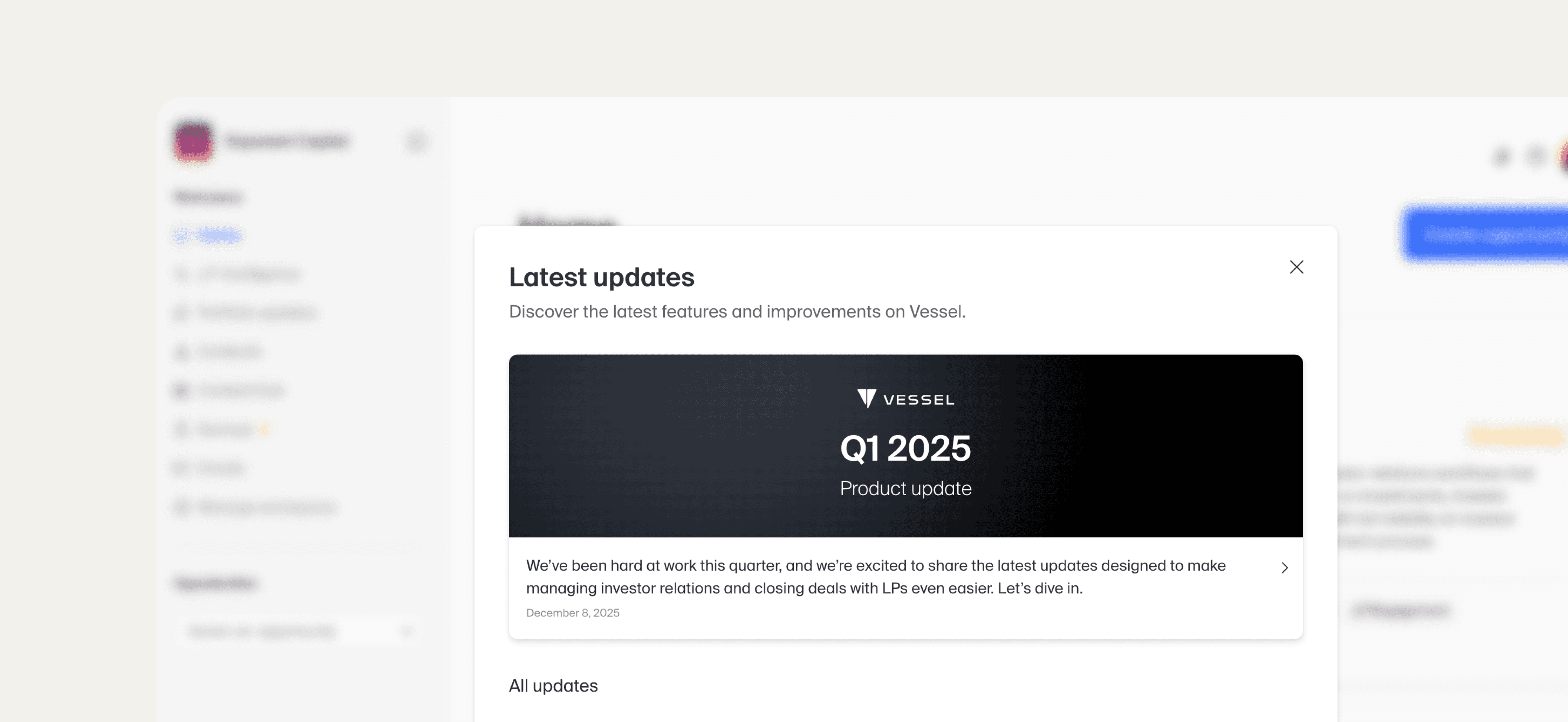 As we closed out the year, we pushed that foundation much further. This update brings together several of our most ambitious launches yet, centered on intelligence, automation, and transparency. Together, they move Vessel toward a clear goal: becoming the system that doesn't just host your fundraising, closings, and reporting, but actively runs them.